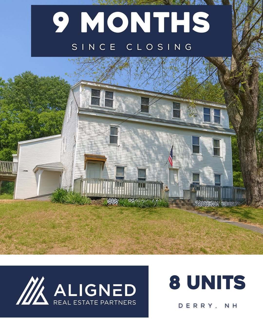 Nine months ago, we closed on this 8-unit in Derry, NH. Solid location, under-market rents, and significant deferred maintenance. We closed this deal off-market, owned by an elderly seller who was finally looking to retire. We put together a contingency-free contract so he felt comfortable going under contract and notifying his tenants, which had been a sticking point for him.